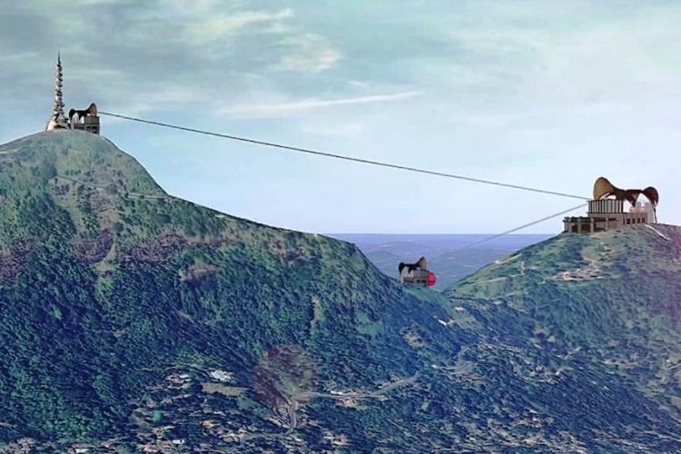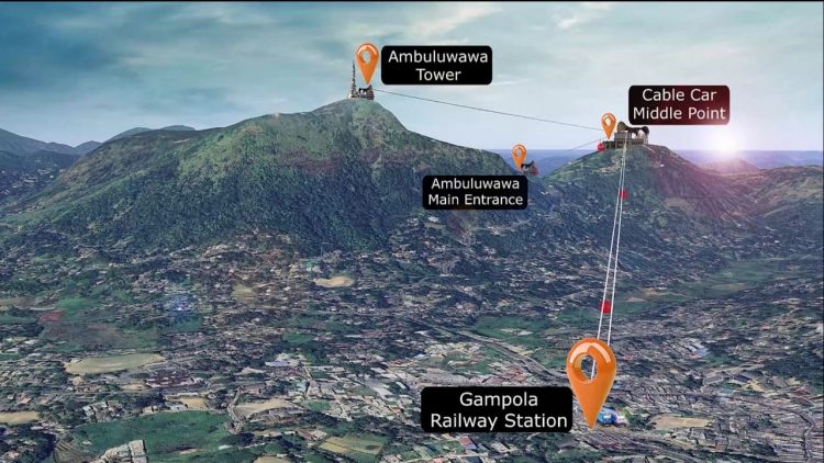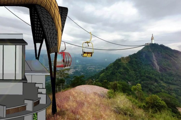 The first ever cable car service being established in Ambuluwawa linking the mountain with the Gompola town