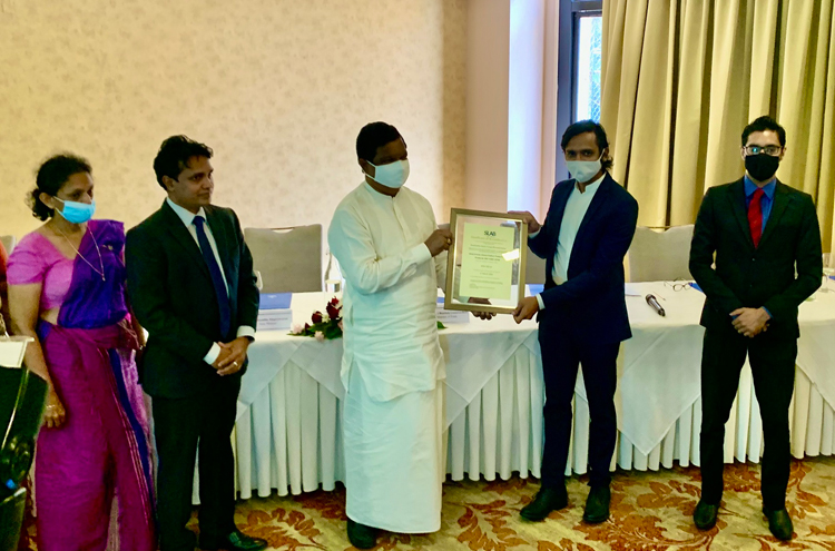 The accreditation certificate was handed over to SFG by the Hon Dr. Bandula Gunwardena, Minister of Trade, on behalf of SLAB, in the presence of the Chairman and CEO of SLAB and several other dignitaries.