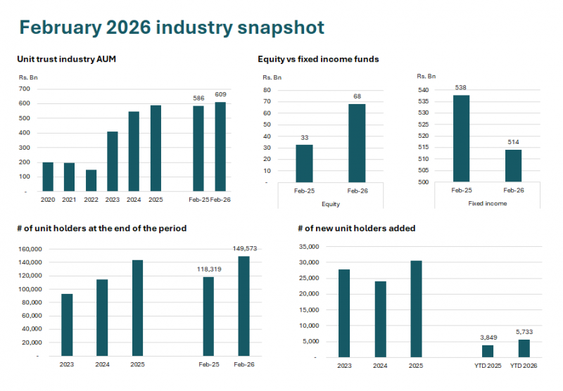 Commenting on the February industry results, newly elected President of the Unit Trust Association of Sri Lanka (UTASL) and Director/CEO of Senfin Asset Management, Jeevan Sukumaran, stated: “The industry’s performance as at end-February 2026 reflects a degree of consistency, with continued activity in equity-related funds. We are also observing a gradual shift towards more balanced investment allocations across fund categories.”