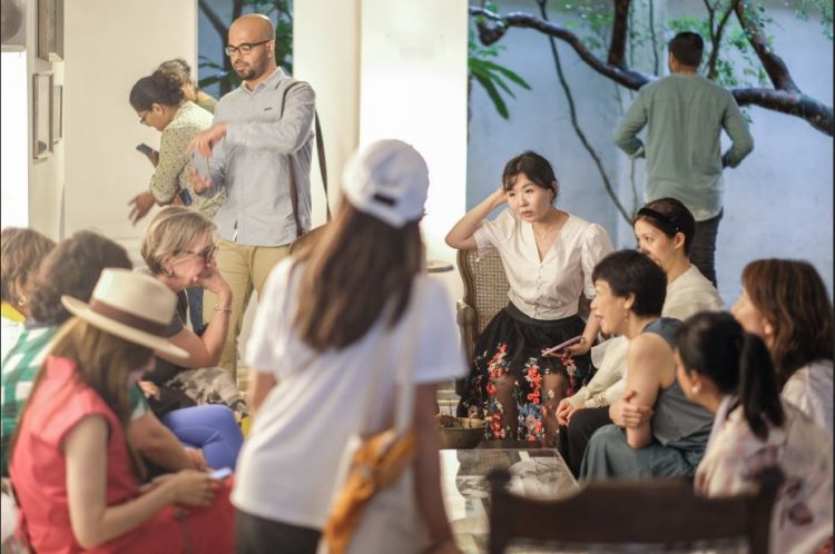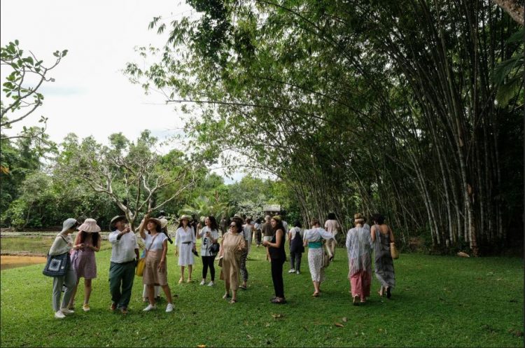 Events at Lunuganga ran between Saturday, 13th of July and Sunday, 14th of July. The weekend included two installation launches: Botany and Batik: the Living Archives of Ena de Silva in collaboration with the Ena de Silva Foundation and artist Salome Nanayakkara at No. 05 at Lunuganga and Saudade: Encountering the Haunting Presence of Prince Dorovana by artist Chathuri Nissansala in the Lunuganga Reading Room. Nissansala also guided two Queering the Garden tours with the Geoffrey Bawa Trust Senior Design and Communications Manager Thilini Perera, and artist Firi Rahman offered two tours of his installation In between: the existence of Firdaus. Renowned musician Ravibandu Vidyapathi led a 14-piece orchestra through a performance of music from the 2004 Lunuganga film Salt River, and Colombo-based restaurant GINI served sundowner cocktails in addition to a ticketed seven-course dinner. GINI returned to the garden on Sunday to cater an afternoon picnic with free cocktails from Rockland Distilleries and a deejay set by Ruvin de Silva. Guests also had the option of completing a scavenger hunt designed by the Geoffrey Bawa Trust’s Youth Advisory Board. The launch event precedes more programming centred around the garden in the coming months.