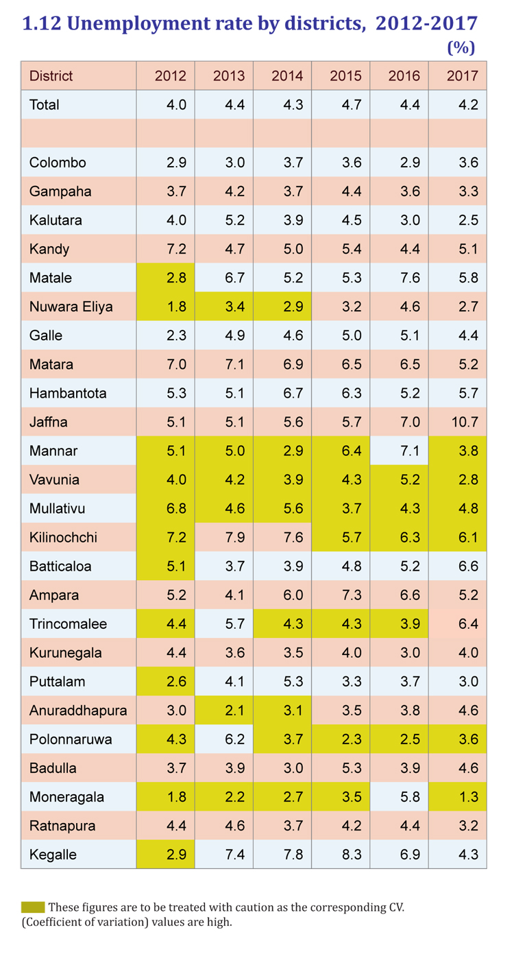 Accordingly Jaffna’s unemployment had rose from 5.7% in 2015 to 7% in 2016, whilst the Mullativu District unemployment also grew from 3.7% in 2015 to 4.8% in 2017, the recent statistics notes.