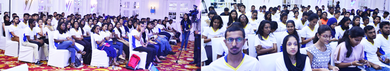 Photo captions: (Above) Unilever Sri Lanka Chairman Carl Cruz addressing the forum and (below) a cross section of the students at the forum