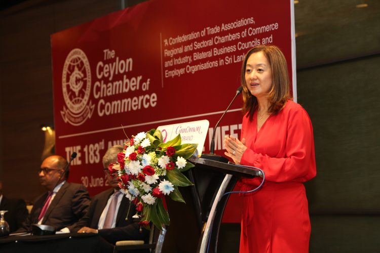 “Chairman Govindasamy, CEO de Silva, honorable members of the board, and friends at the Ceylon Chamber of Commerce – thank you for the invitation to speak with you this evening. I understand this is the first time in three years you’ve been able to hold this General Meeting in person – and how wonderful it is to see you all in person and not on a screen! As the Chairman just spoke about all the Chamber’s activities, I want to applaud your leadership in entrepreneurship, transparency, good business governance, and strong CSR (Corporate Social Responsibility). All of you in this room are not only spectators but real advocates for strengthening the investment and trade climate, and democratic institutions in Sri Lanka to make this country better.