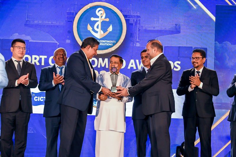 Image Caption: Arjuna Hettiarachchi, Managing Director of X-Press Feeders Sri Lanka, receives the award for #1 Feed Operator of the Year from the Honourable Minister Nimal Siripala De Silva, Minister of Ports, Shipping & Aviation. Also, in the photo (from left to right) are Jan Zhang, CEO - CICT Terminal, S. Ruwanchandra, Secretary - Ministry of Ports & Shipping, Keith Bernard, Chairman - SLPA, Nelson Sequeira, Director - X-Press Feeders Singapore, Prabath Malawige, Managing Director - SLPA and Romesh David, CEO - SAGT Terminal.