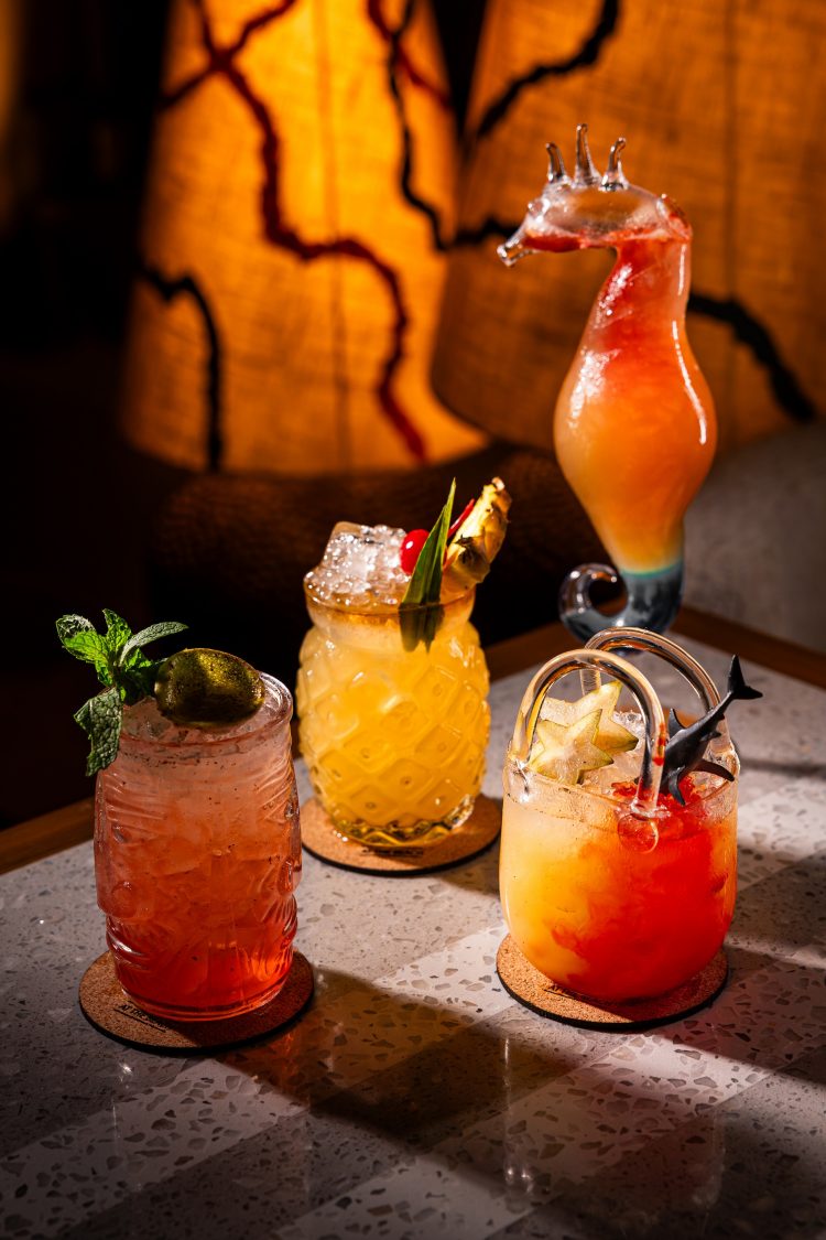 Designed to mirror the rhythm of the coast, the line-up brings together vibrant fruits, bold spirits, and unexpected infusions. Shark Attack delivers a punchy combination of arrack or gin with starfruit, passionfruit, citrus, and ginger, while Touch Me Slowly leans into a smoother profile with vodka, yuzu, coconut, and pandan layered with pineapple and blue curaçao. For something richer, One More Sin offers a lush tiki-style blend of white and dark rum with banana, mango, and ginger beer, while Holy Ritual rounds things off with a more nuanced, creamy profile—featuring sesame-infused rum, coconut cream, lychee, and citrus.
