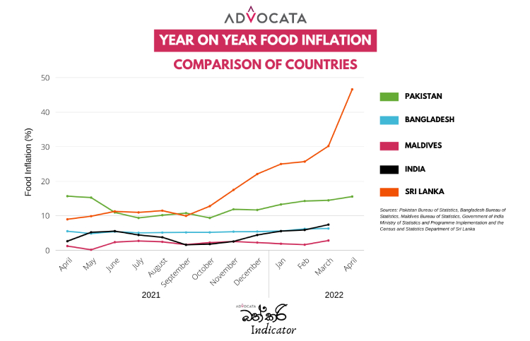 The Colombo consumer price index recorded a similar rate of 47% year on year increase in food inflation. Comparing supermarket food prices from March 2021 to 2022 there has been an increase of close to 40%.