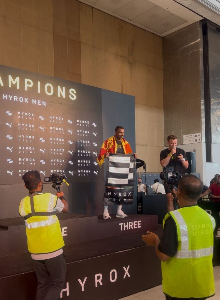 Sri Lanka’s fitness movement celebrated a landmark achievement as Yohan Manoj Rathnayake secured a podium finish at the HYROX Delhi event, bringing the island nation its first HYROX flag on the international stage. Rathnayake completed the HYROX men’s 35–39 division in an impressive time of 1:21:26, earning third place and signalling Sri Lanka’s arrival in the growing global functional fitness community.